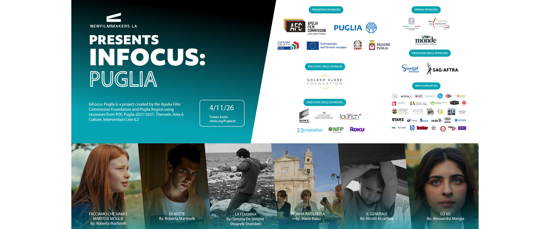NewFilmmakers Los Angeles — a year-round nonprofit organization dedicated to showcasing independent artists through monthly festivals and industry-focused programming, under the leadership of Executive Director Larry Laboe — returns with InFocus: Puglia, a program created by artistic director Silvia Bizio, in partnership with the Apulia Film Commission and with the support of Mònde – Festa del Cinema sui Cammini. The 2026 edition presents a curated selection of films from Apulia, reflecting the region’s evolving cinematic landscape and its growing international outlook.